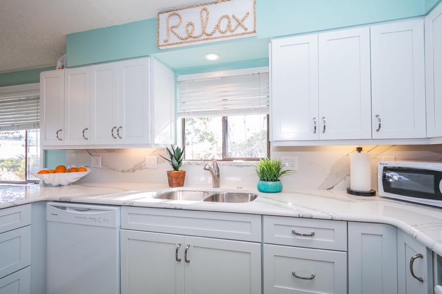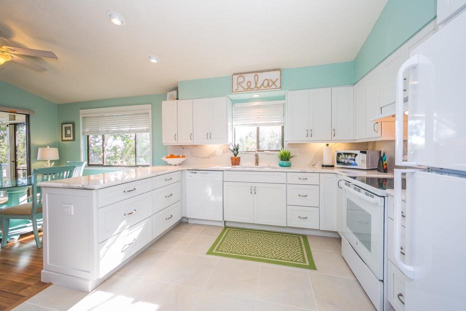 The homeowner was looking for a beach look for her rental home on Anna Maria Island. She needed high quality, long lasting, durable cabinetry and a maintenance free countertop for the renters she has in her home.