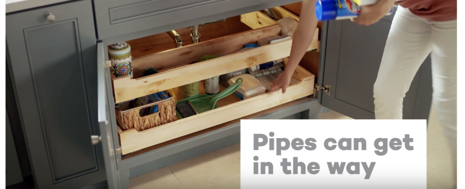 The U-shaped roll-outs let you pull cleaning supplies and detergents forward from hidden depths of the sink base. More usable storage that doesn’t require […]