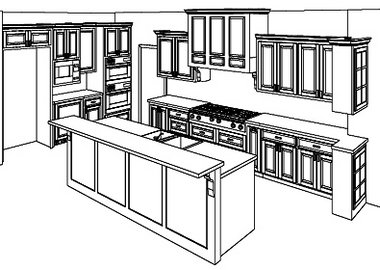 - Perspective drawings are created allowing the customer to easily visualize the completed project complete with accessories, moldings and appliances.